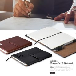 This strap-bound notebook is reminiscent of a time when writing was the preferred method of capturing information and communicating. It features an elasticated loop for a pen and for a USB memory stick (not included).