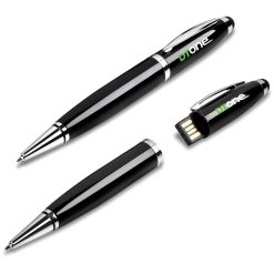 This metal stylus ball pen and 16GB USB memory stick are packaged apart in the gift box to showcase the parts individually, however, once the recipient opens the gift the two parts can be joined to create the perfect dual-function workday essential.