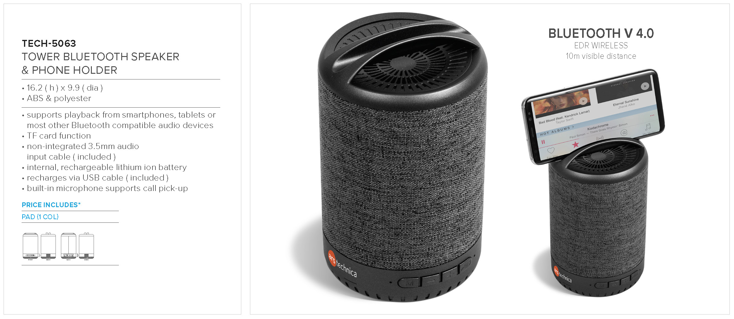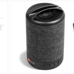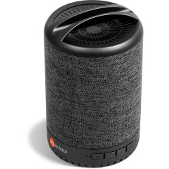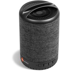 The warm polyester surface of this Bluetooth speaker makes it a comfortable feature in the office or home. The phone holder is great for watching videos on your phone or checking out music videos you’re playing through the speaker.